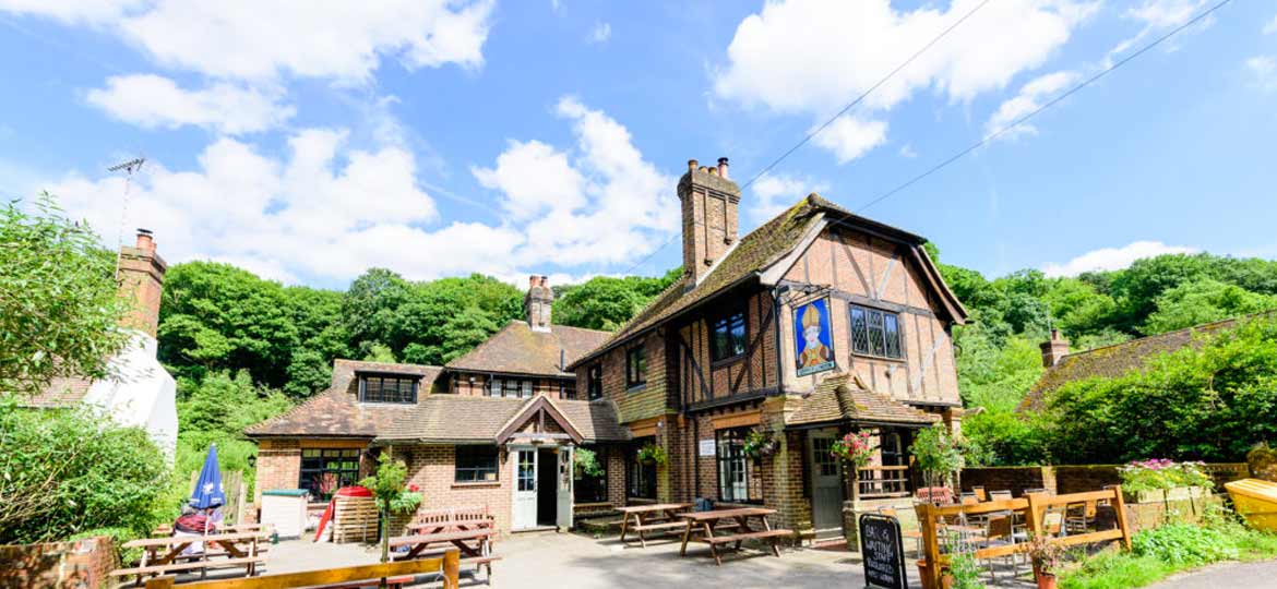Tucked away in the tiny village of Abinger Common and with plenty of outdoor space, The Abinger Hatch is a slightly out of the way of the main mountain bike trails but well worth stopping at on your drive home after a ride.